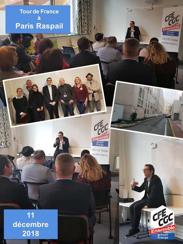 Ce 11 décembre 2018, le Tour de France des HIS (Heure d'Information Syndicale) a fait étape sur le site de Raspail, rue Campagne Première à Paris.